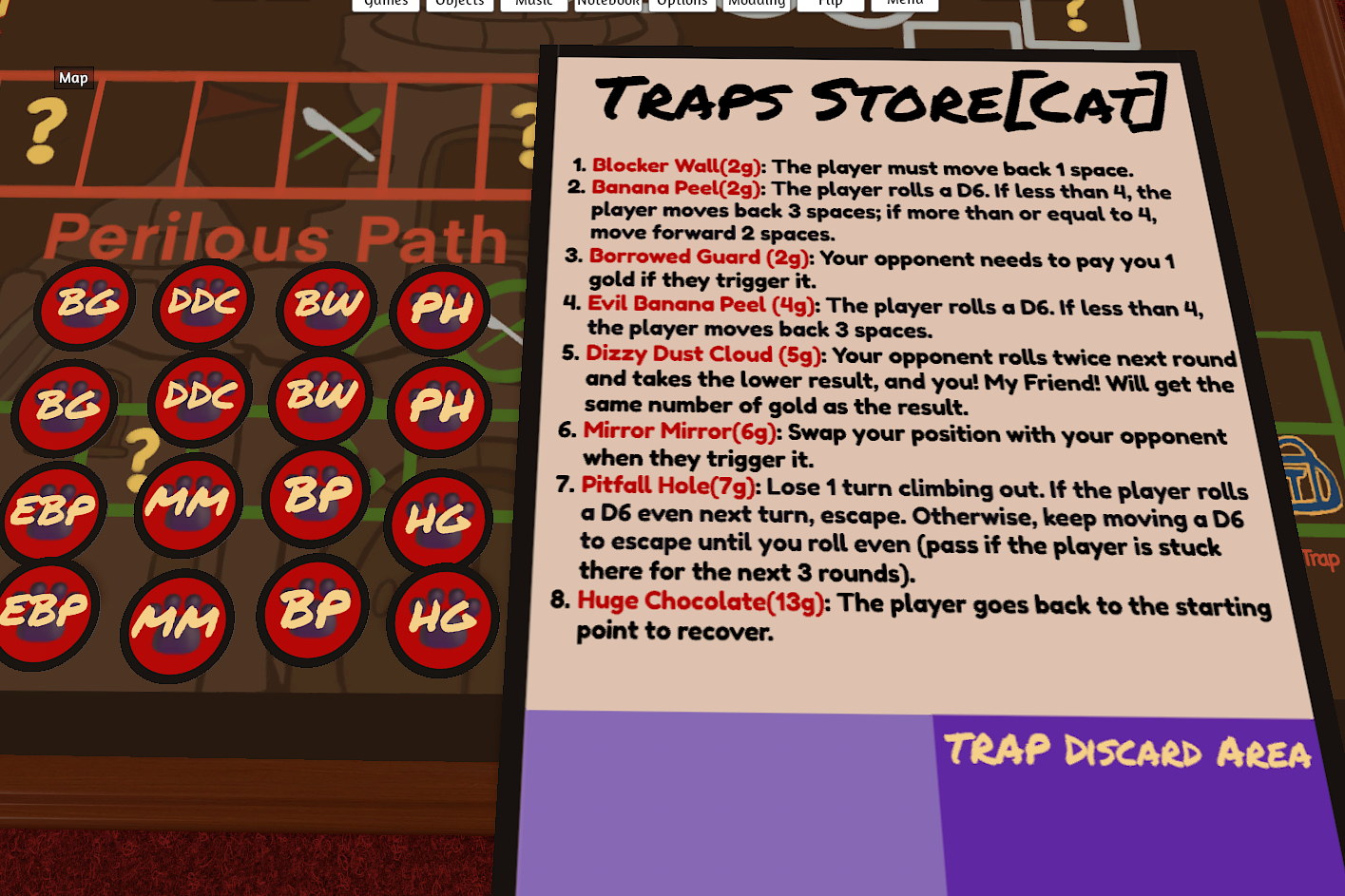 Result: I chose to add the “Trap Store” mechanic that the player can shop on it at the start of the game.