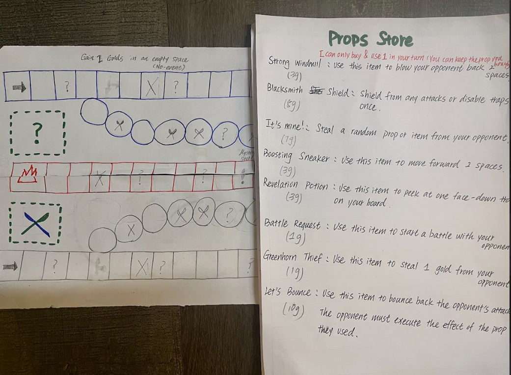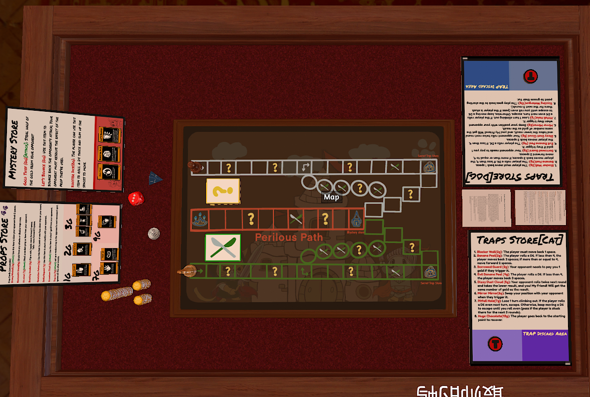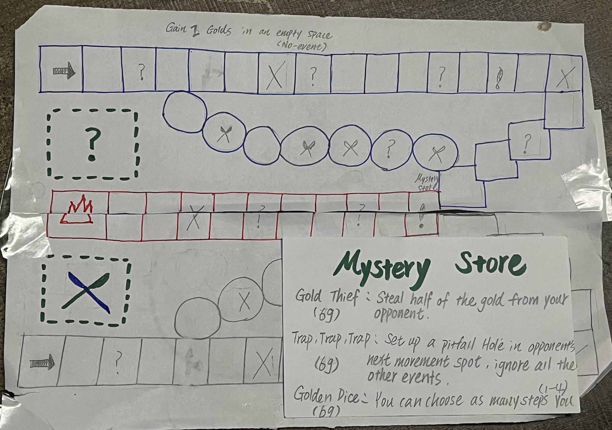 Feedback & Problem: While players enjoyed the game overall, several issues appeared. Some rules were unclear, especially the trap-triggering rule—players misunderstood traps as being triggered by stepping on them instead of passing through them. Players also tended to ignore the Mystery Store because the rules felt too complicated, and the auction system did not work well when one player had very little gold.