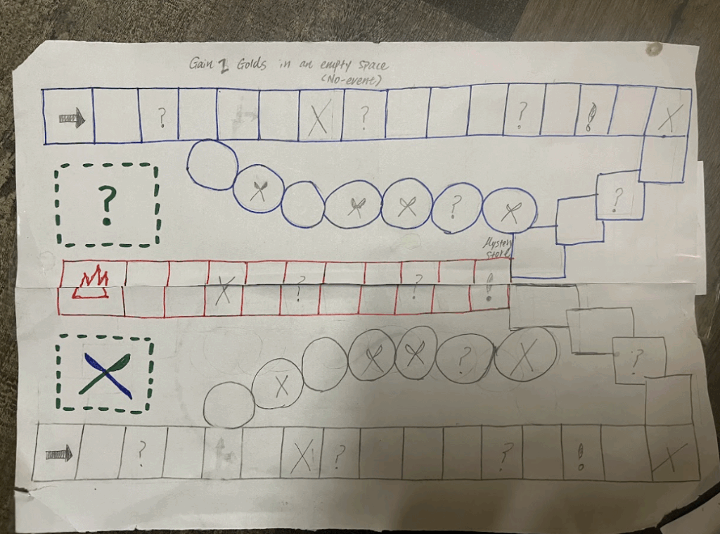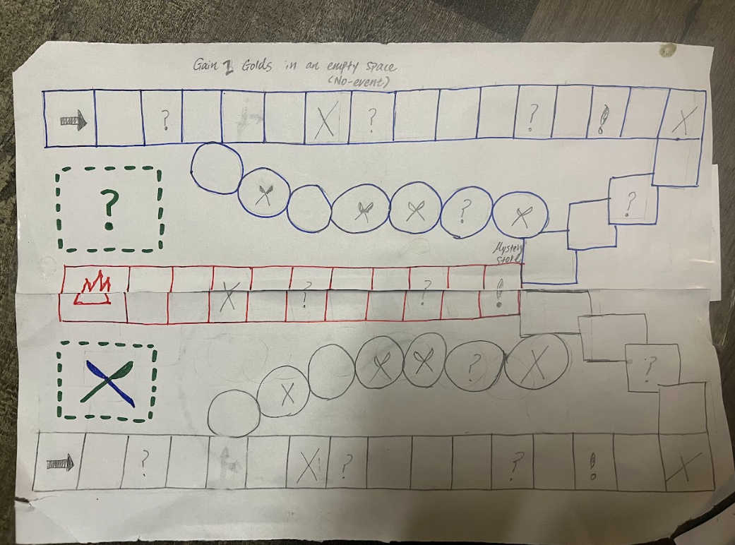 - I mapped out empty spaces and event spaces to estimate the minimum and maximum gold players could earn during a game.