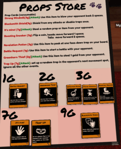 Solutions: I simplified the prop mechanic so players can only purchase and use one prop on their turn, making it easier to track. I also adjusted the booster die so it can be reused if there is still a gap of six or more spaces when the opponent is on the perilous path, helping trailing players catch up.