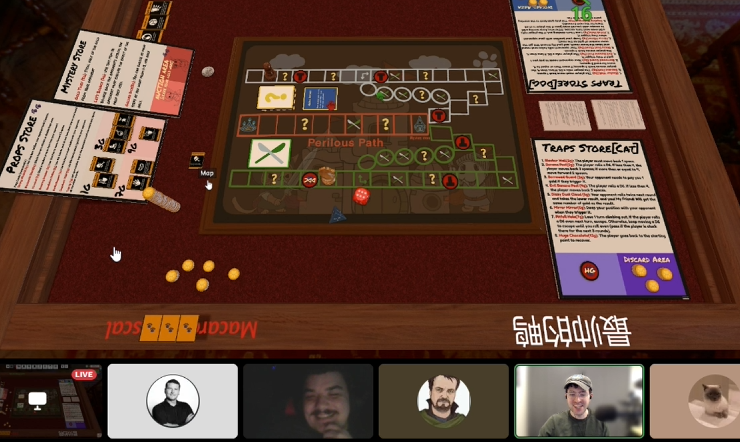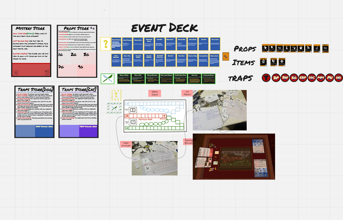 Result: I successfully blended board racing mechanics with a trap-setting scheming system, along with an event deck and a Mystery Store mechanic.